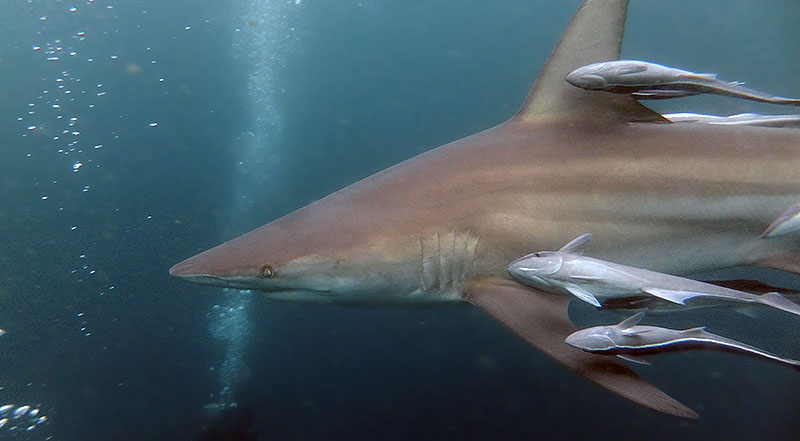 Diving with sharks during our scuba diving holiday on the reefs of the Aliwal Shoal in South Africa and Ponta do Ouro, in Mozambique was a thrilling experience. We were lucky enough to dive with ragged tooth sharks, whitetip and blacktip reef sharks and our favourite - hammerhead sharks. While diving we could hear humped back whales close by and saw several in the bay when on the surface