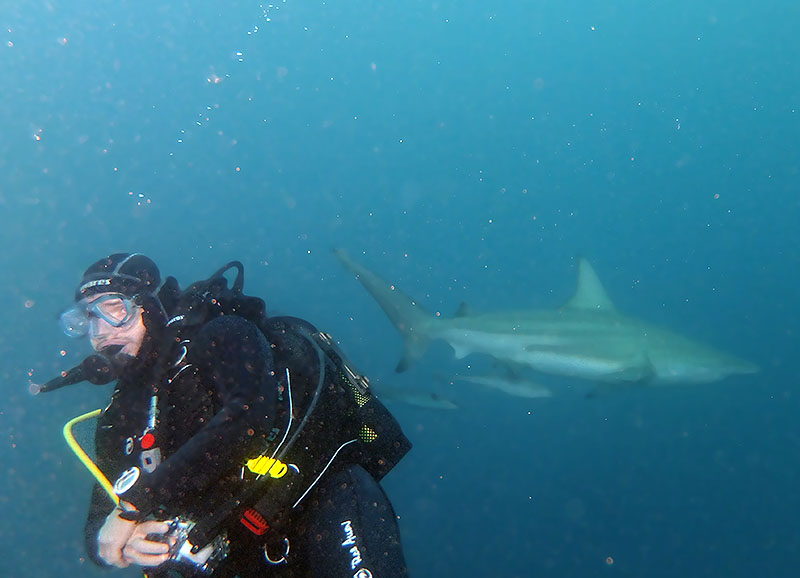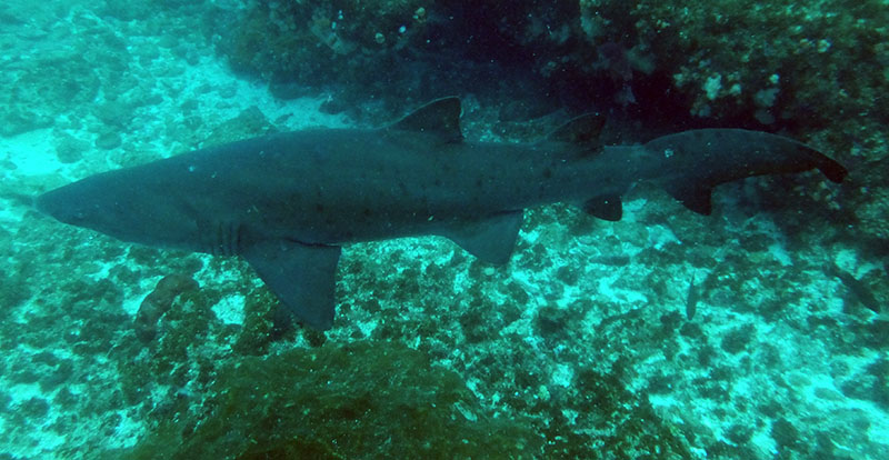 Diving with sharks during our scuba diving holiday on the reefs of the Aliwal Shoal in South Africa and Ponta do Ouro, in Mozambique was a thrilling experience. We were lucky enough to dive with ragged tooth sharks, whitetip and blacktip reef sharks and our favourite - hammerhead sharks. While diving we could hear humped back whales close by and saw several in the bay when on the surface